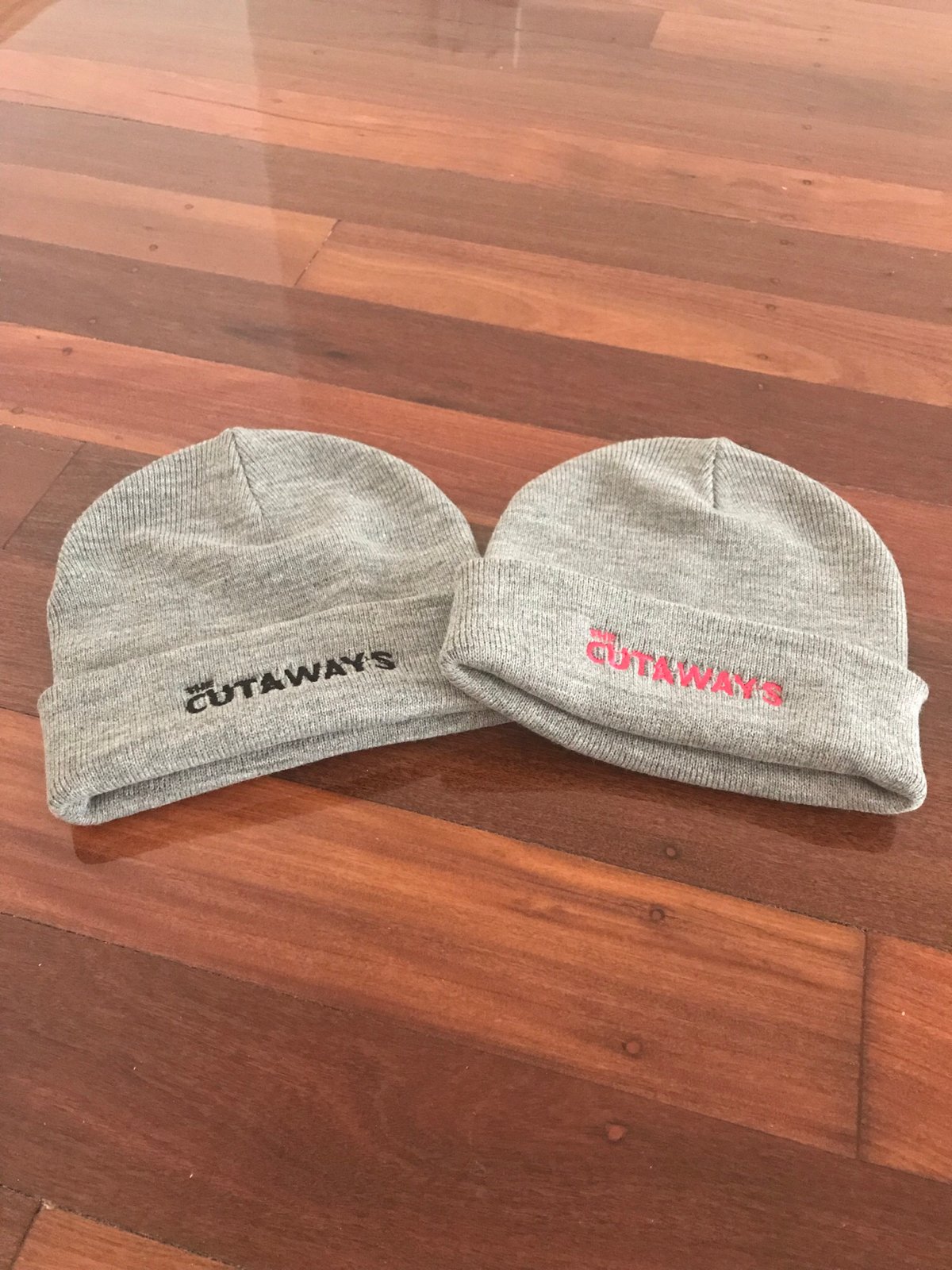 Grey beanie with embroidered logo! On AS Colour branded beanie.